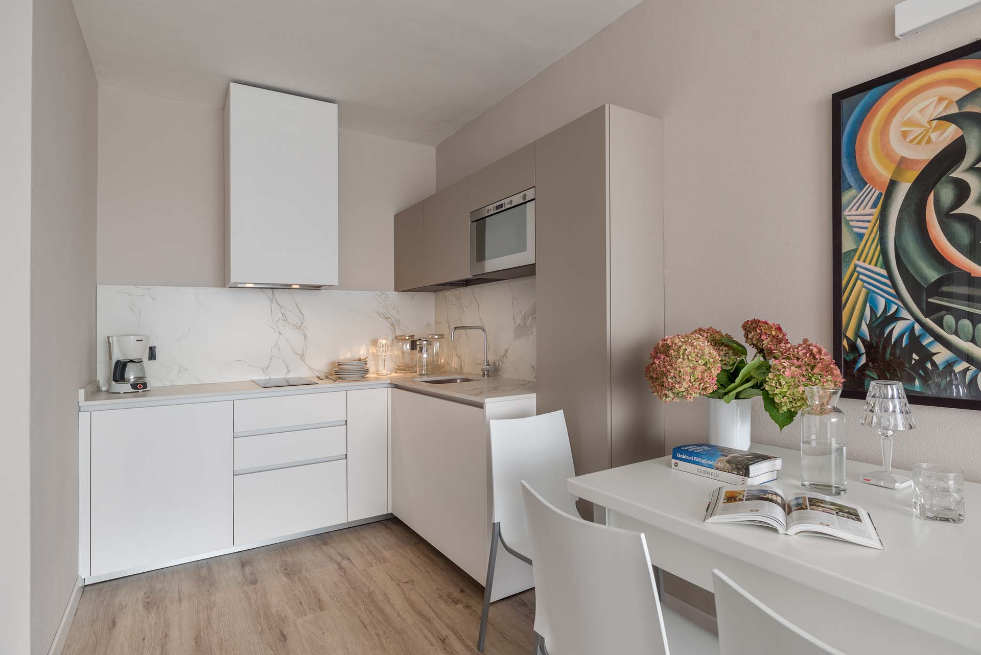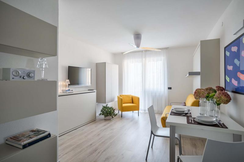 Each holiday apartment in our Residence in Torbole benefits from: a living area, a fully-equipped kitchenette with fridge, kettle and coffee machine, private bathroom with shower, flat screen television with satellite TV, telephone, radio, central heating and high-speed WiFi. High chairs are available free of charge upon request. Kitchen towels are also provided. Bath towels and bed linen are also available for an additional charge.