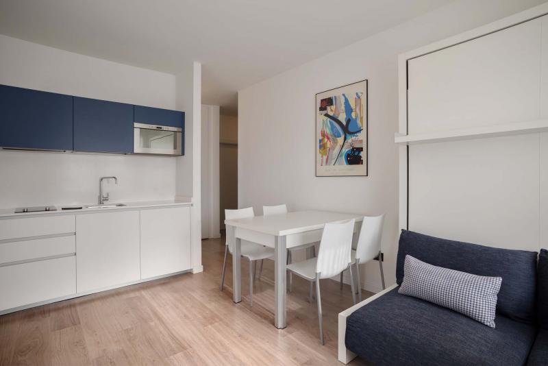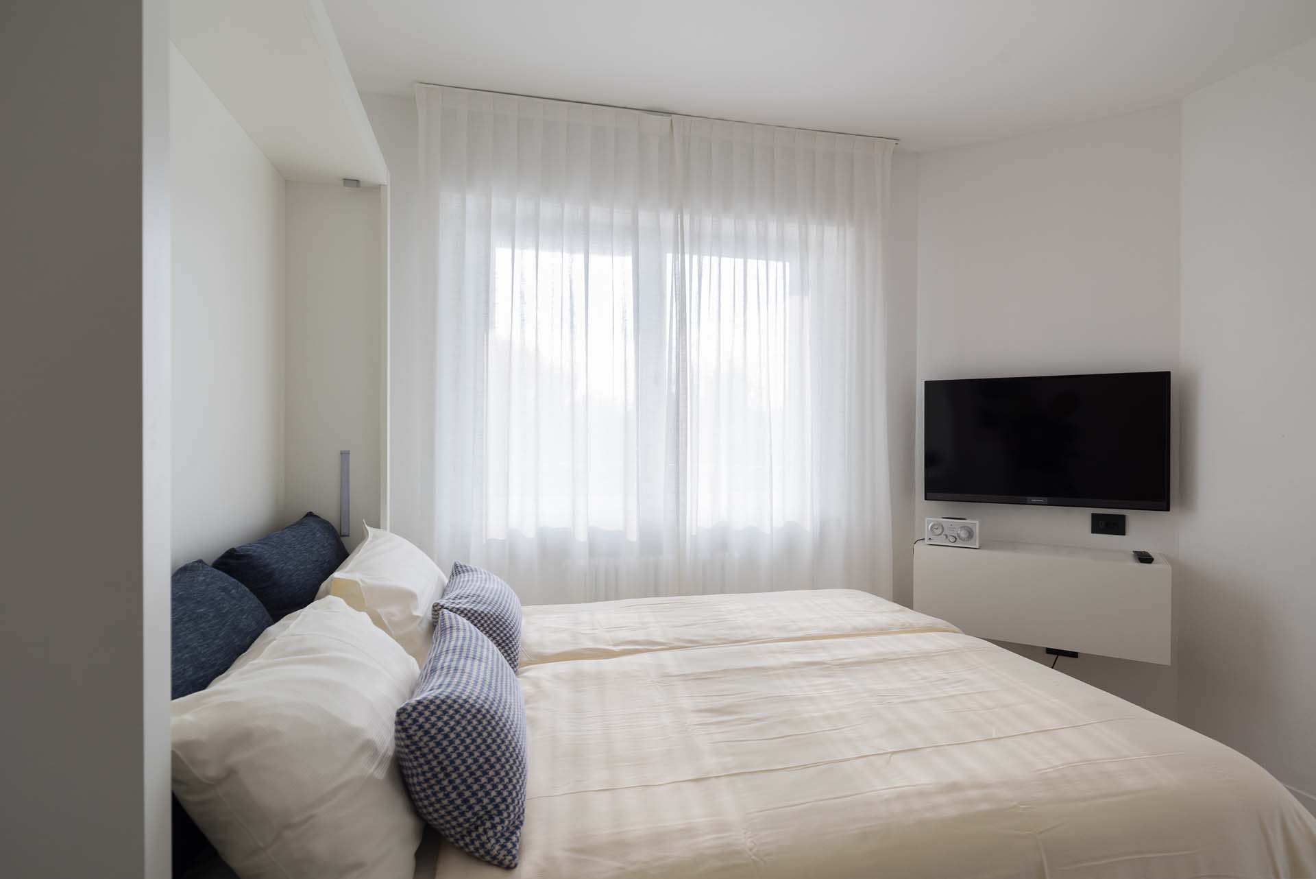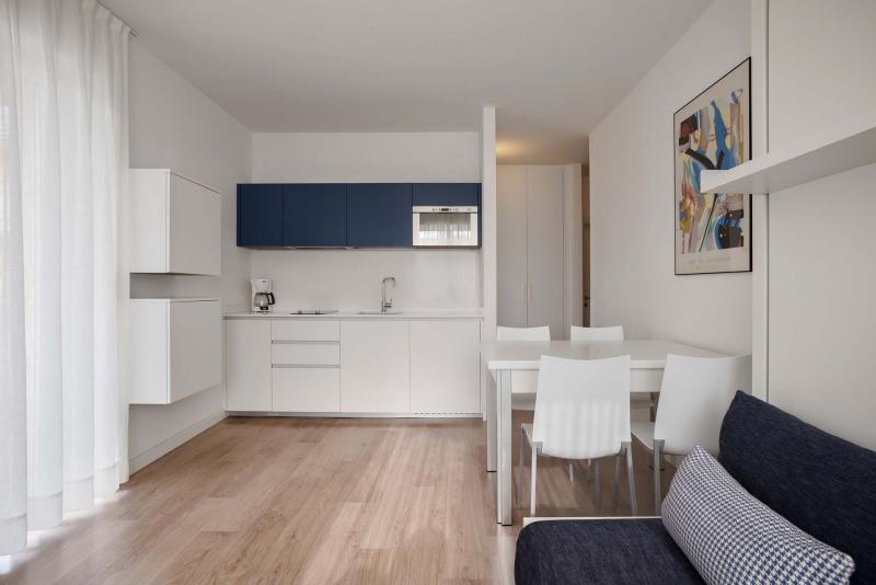 Each holiday apartment in our Residence in Torbole benefits from: with air conditioned a living area with foldaway double bed, a double bedroom and a separate single room fitted with a bunk bed, a fully-equipped kitchenette with fridge, kettle and coffee machine, private bathroom with shower, flat screen television with satellite TV, telephone, radio, central heating and high-speed WiFi. High chairs are available free of charge upon request. Kitchen towels are also provided. Bath towels and bed linen are also available for an additional charge.