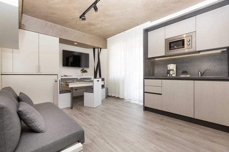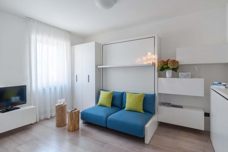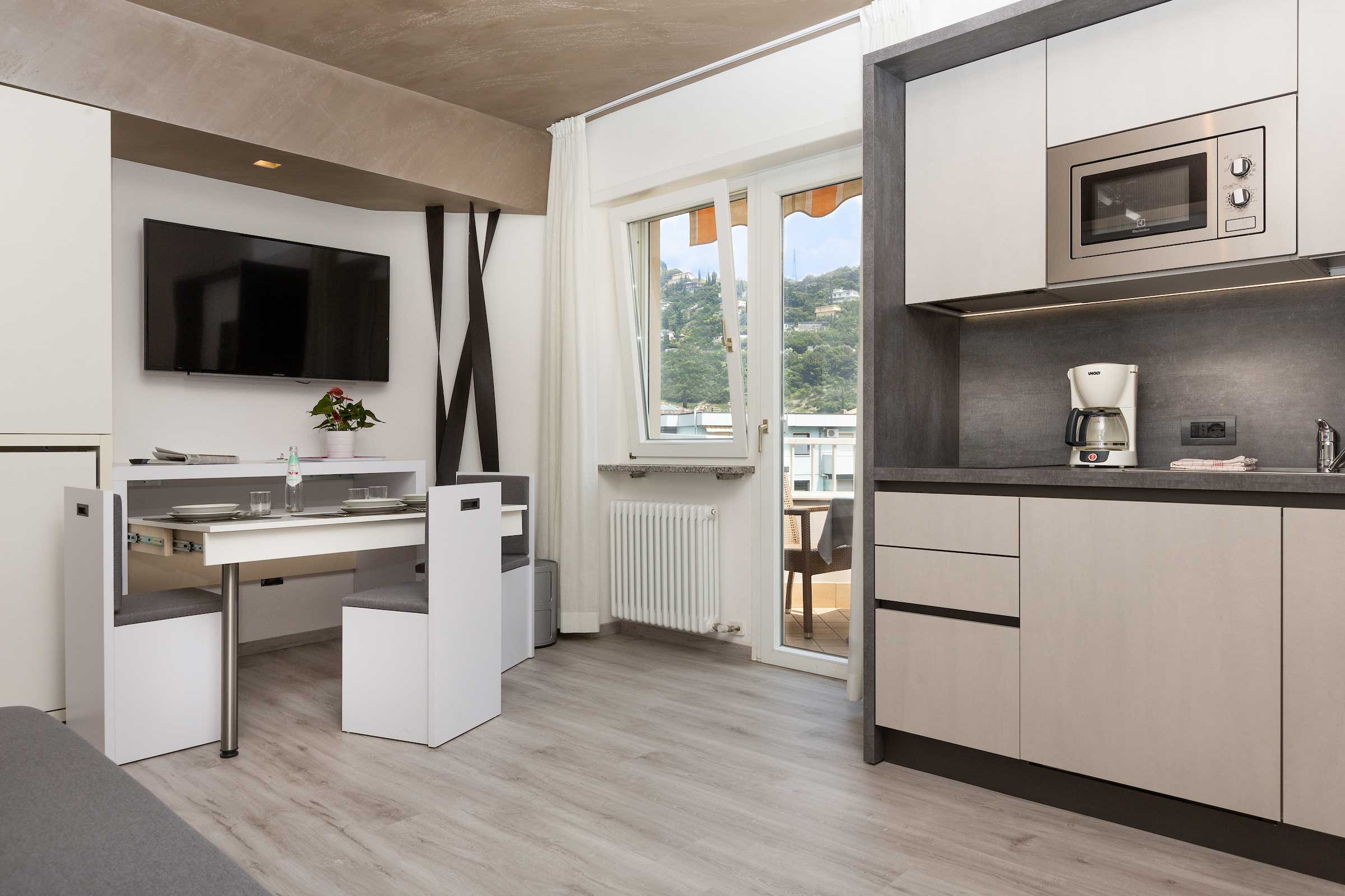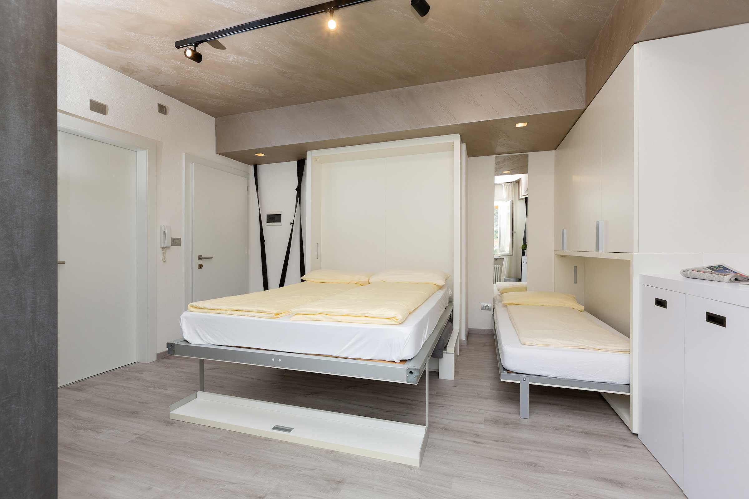 one-room flat 25/30 sq m for 2-3 people max, composed by a living room with 1 hideaway double bed and 1 hideaway single-bed, TV-SAT, kitchenette, bathroom and 1 balcony with north/mountains view, ideal for families with one kid or for groups of friends, bikers and sports lovers.