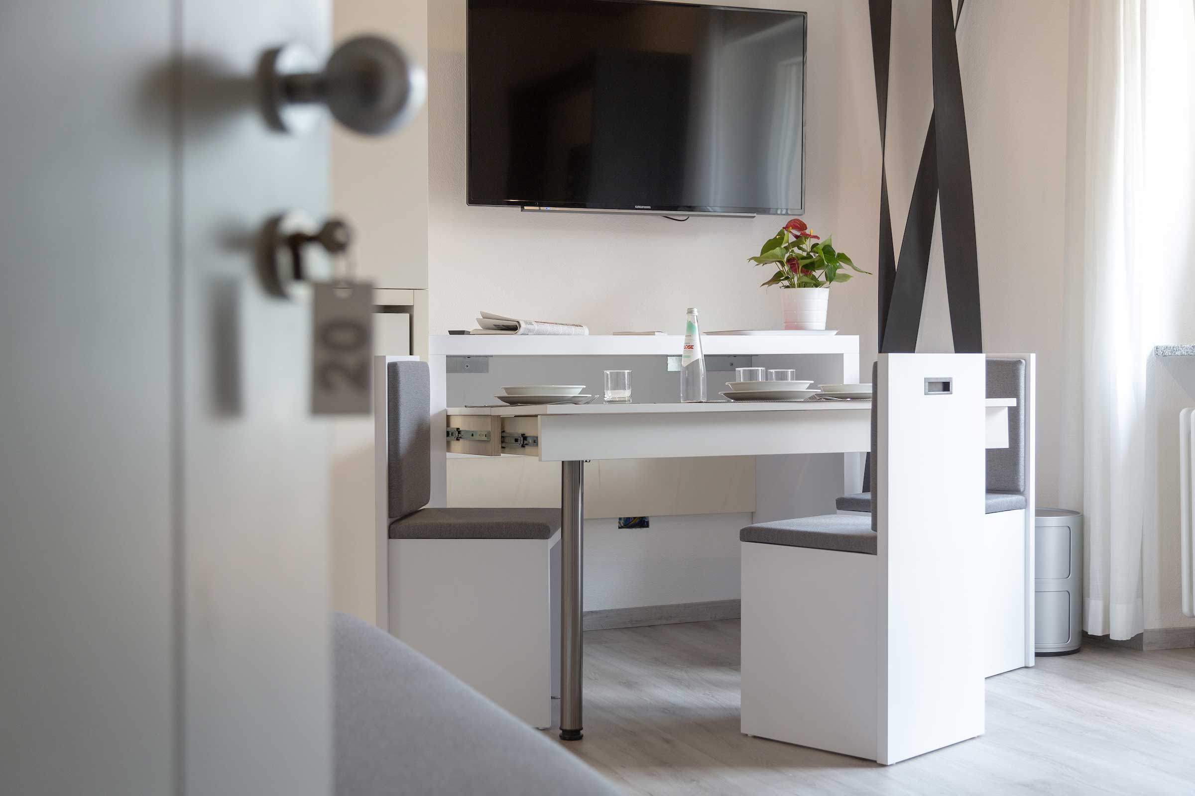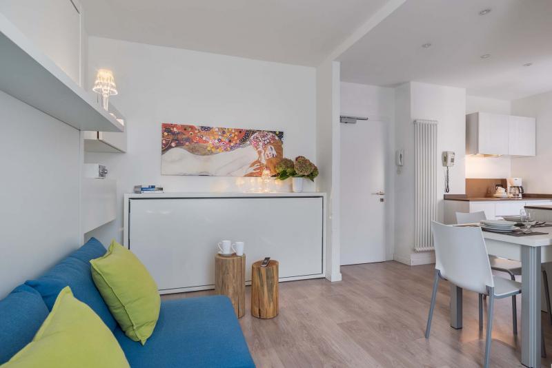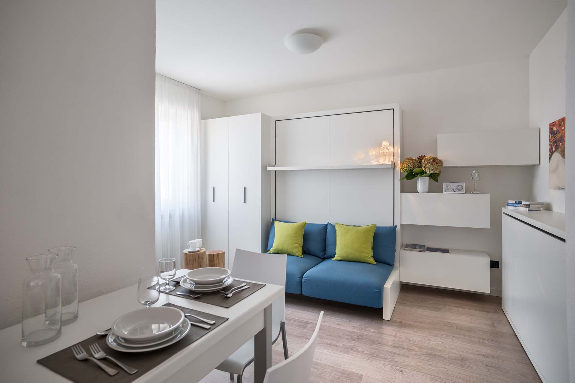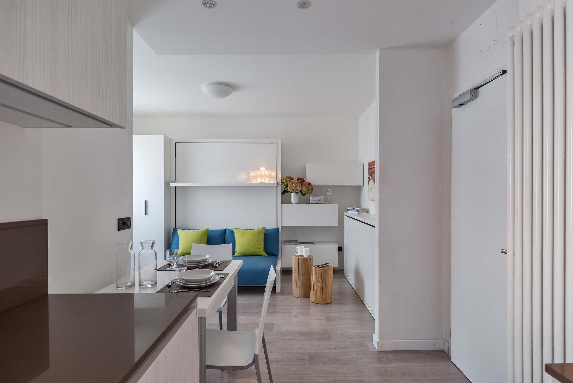 one-room flat 25/30 sq m for 2-3 people max, composed by a living room with 1 hideaway double bed and 1 hideaway single-bed, TV-SAT, kitchenette, bathroom and 1 balcony with north/mountains view, ideal for families with one kid or for groups of friends, bikers and sports lovers.